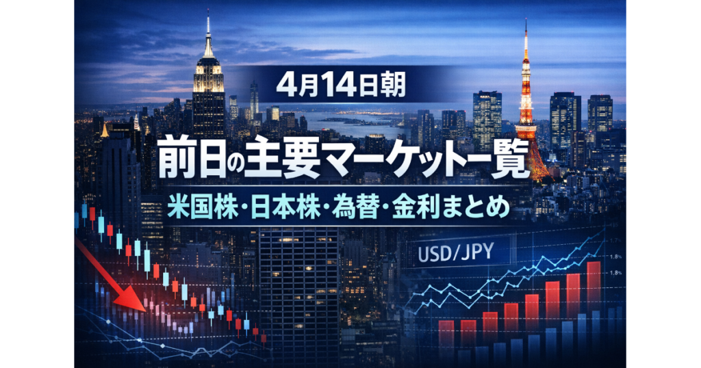 【4月14日朝】前日の主要マーケット一覧|米国株・日本株・為替・金利まとめ