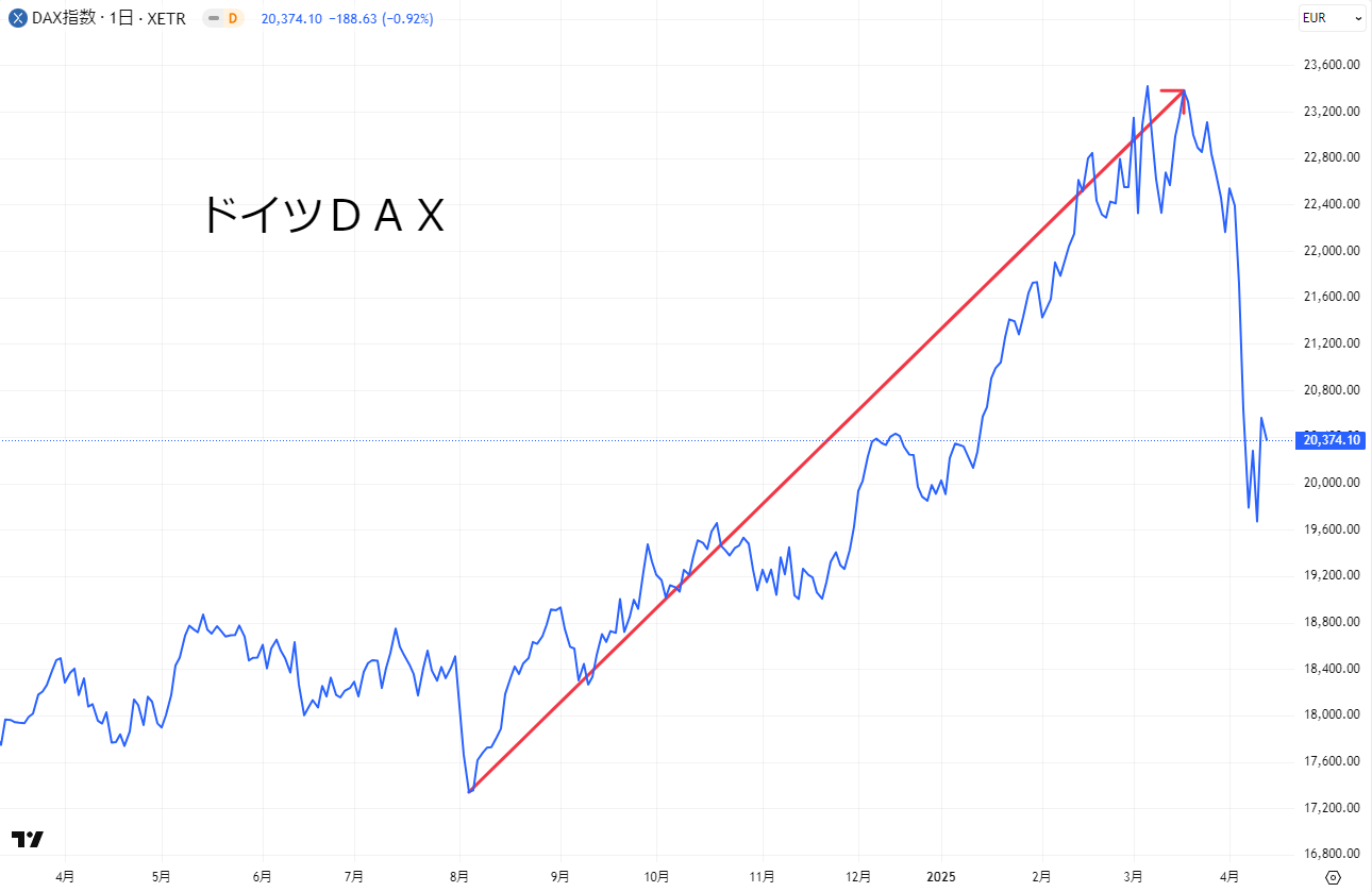 こちらはドイツの株価指数DAXの動きです。