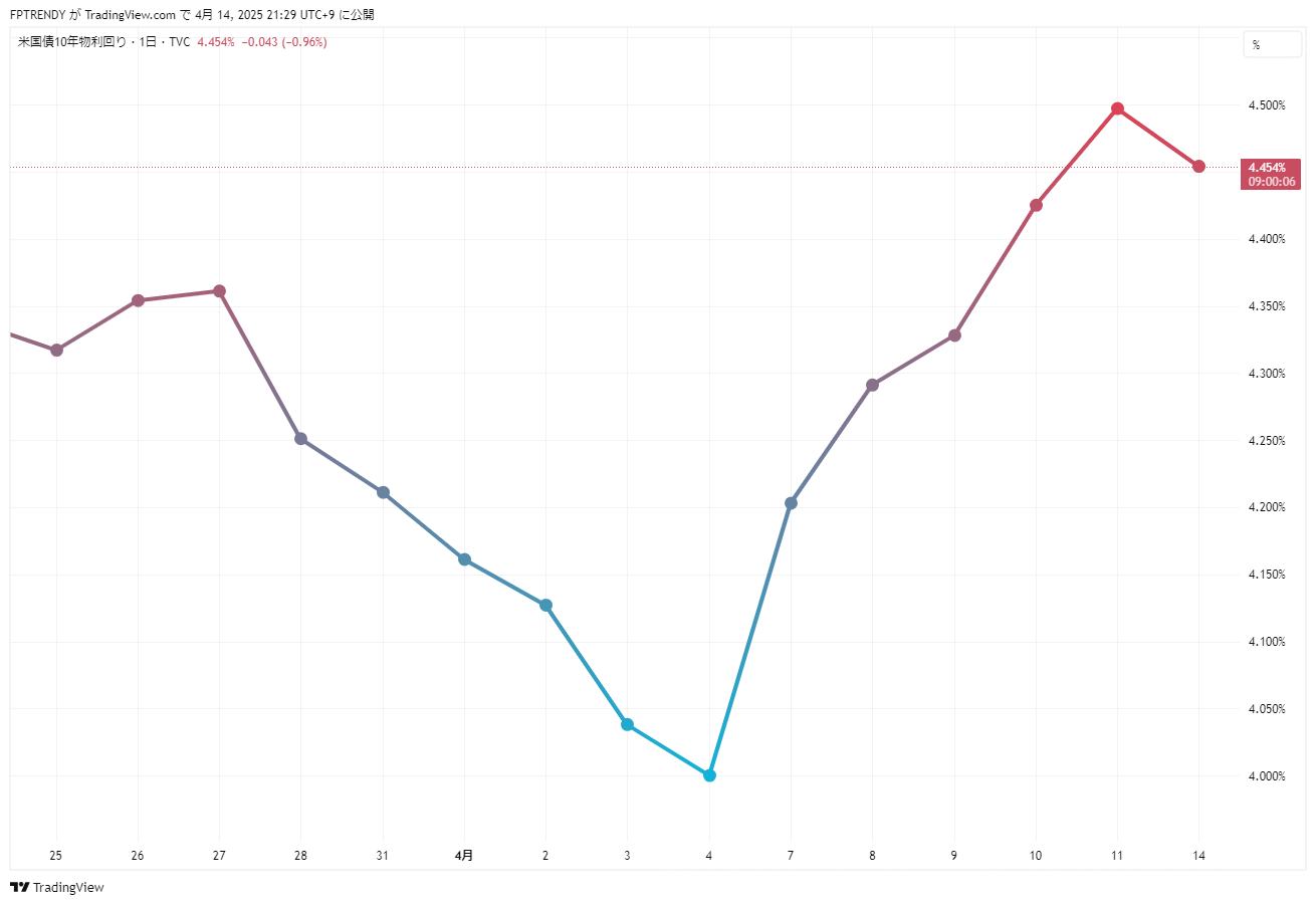 • 前日は**4.454%(-0.043)**と小幅低下