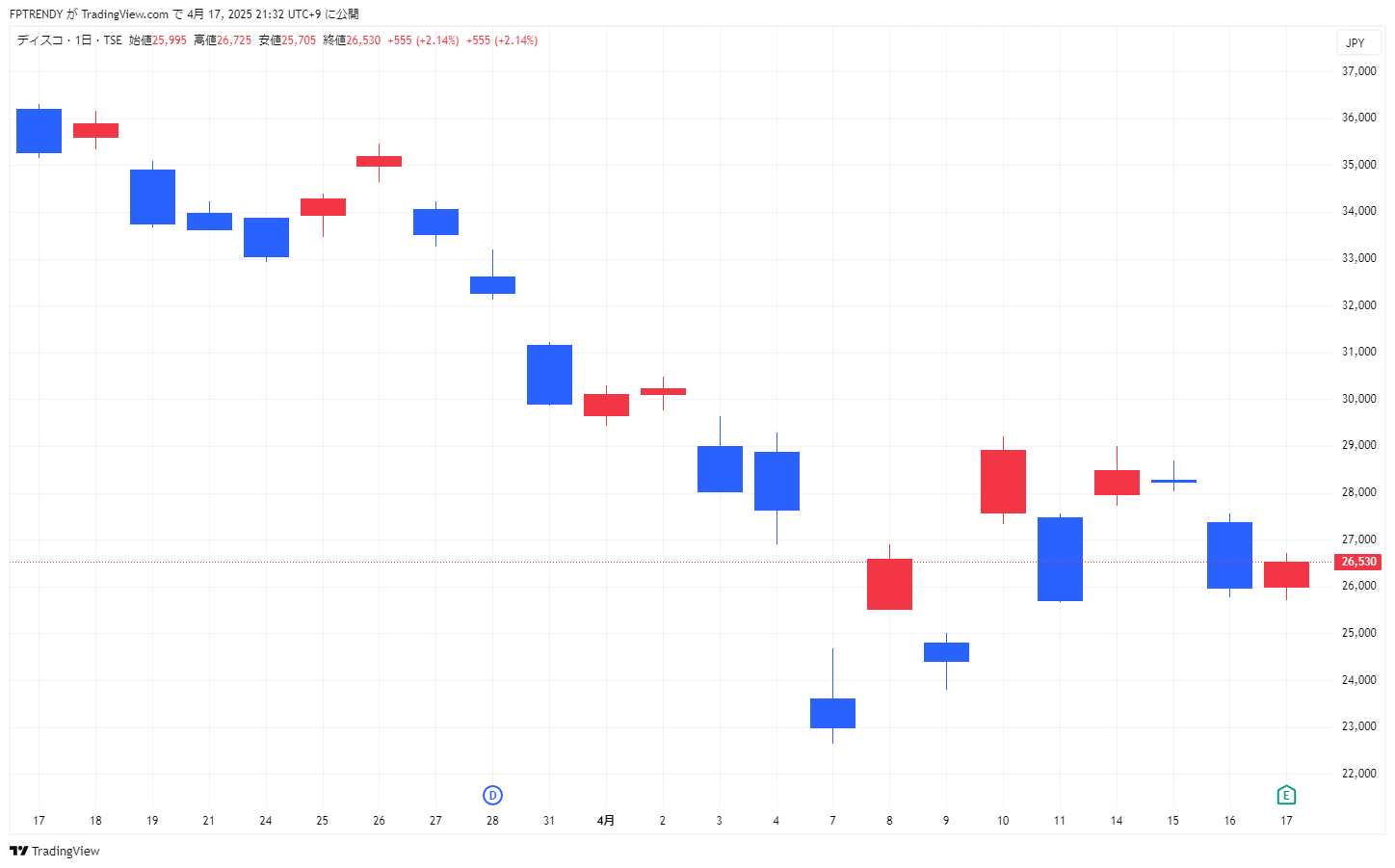📉 ディスコ(6146)日足チャート