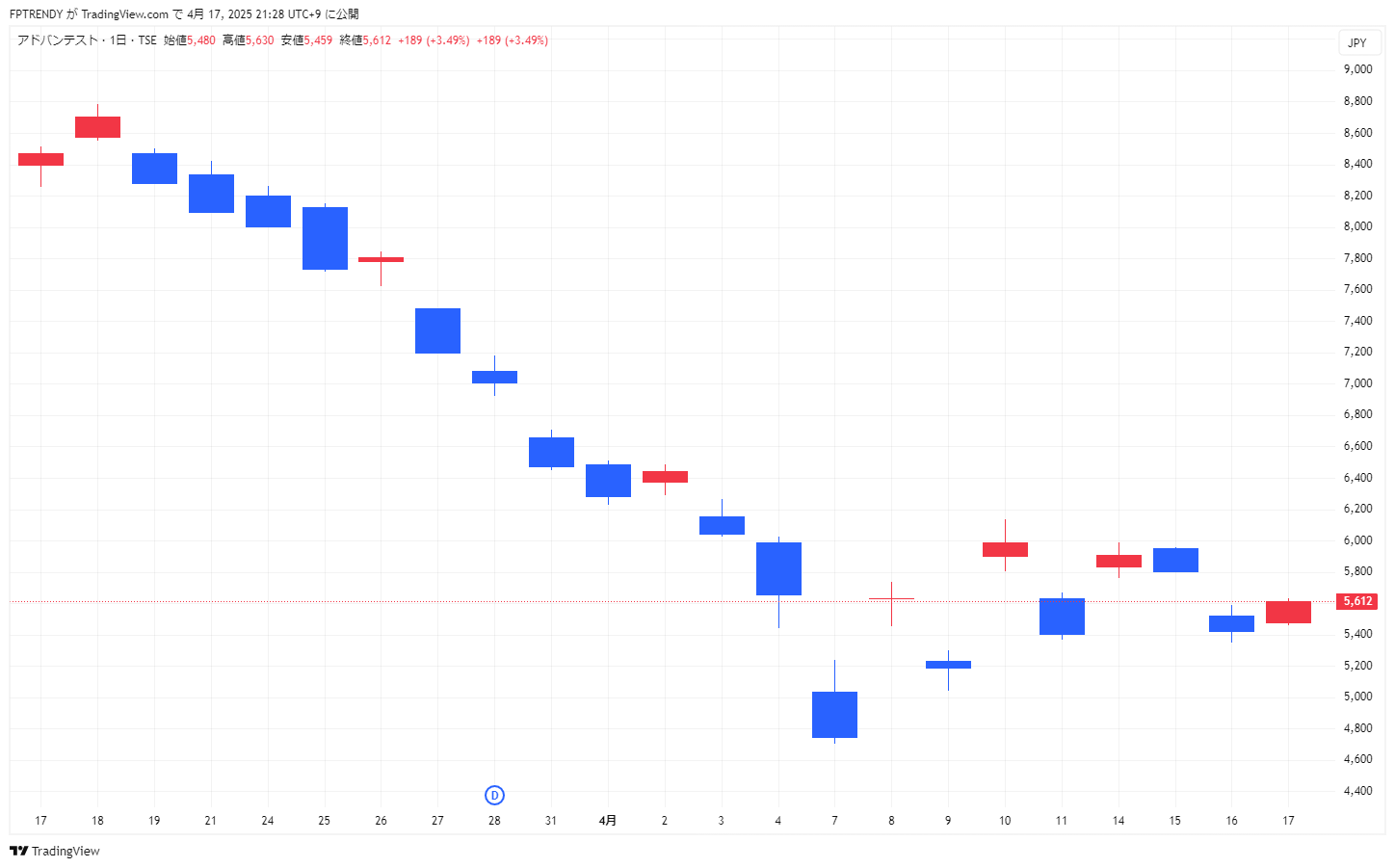 📉 アドバンテスト(6857)日足チャート