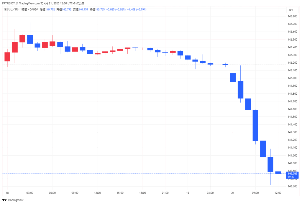 図表1:米ドル/円 1時間足チャート(2025年4月18日~21日)