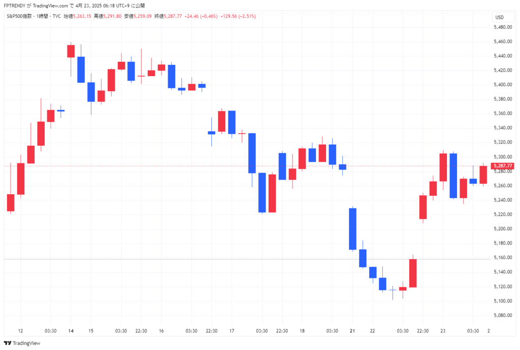 米国株は大幅反発。S&P500は一時5,140台まで下落後、短時間で急回復し5,280台へと戻す展開に。