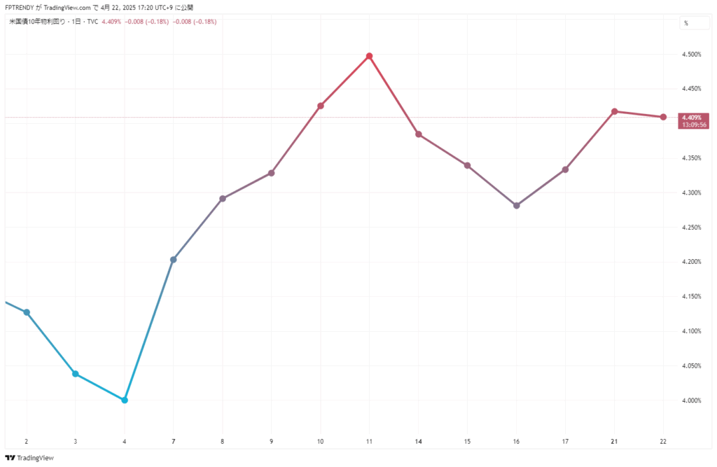利回りは前日比でやや低下し、4.409%(-0.008pt)で引けました。