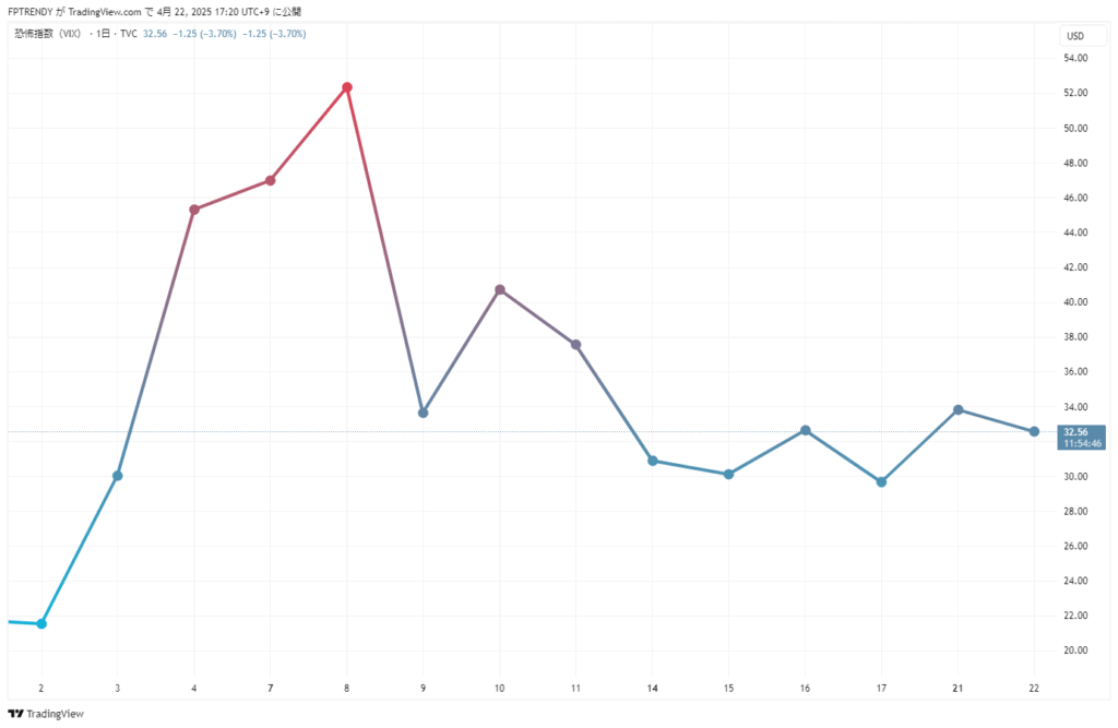 ただし、30台での高止まりは続いており、依然として市場の不安感は根強いことを示しています。