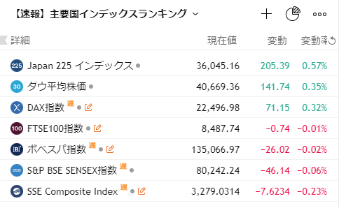 全体としては、日経平均・ダウ平均・DAX指数など先進国市場は上昇基調を維持する一方、中国・インドなどアジア圏では様子見ムードが強い構図となっています。