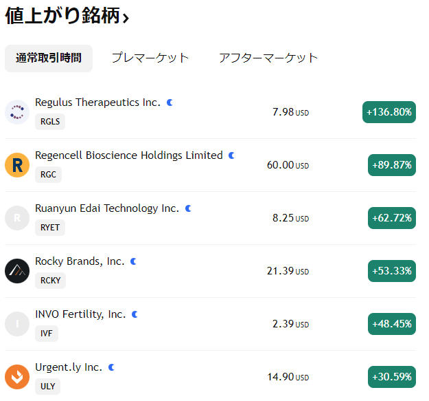 米国株|値上がり銘柄ランキング