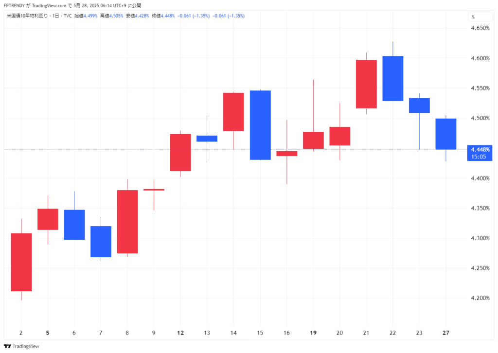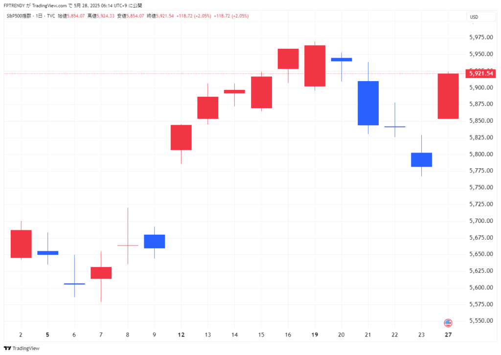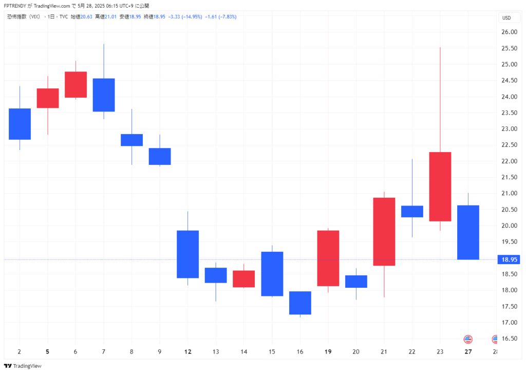 29日のメモリアルデー休場を控え、今後はエヌビディアの決算発表(28日)や休場明けの米市場の需給動向に注目が集まりそうです。
