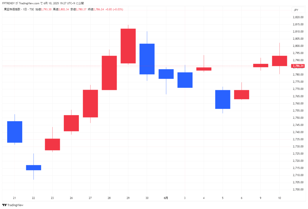 2025年6月10日 東京市場動向(日経平均、TOPIX、ドル円、長期金利、主要株)