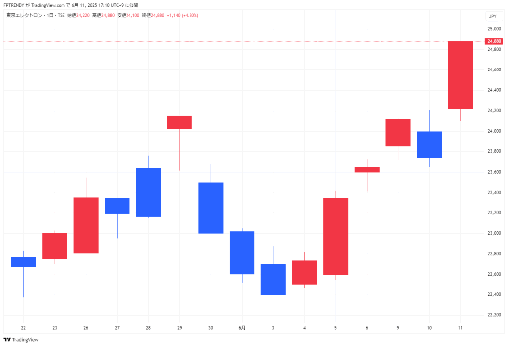 11日の東京市場では、半導体関連株が全体の上昇を牽引しました。特に東京エレクトロン(東エレク)など値がさの半導体関連株が買われ指数を押し上げました。一方で、個別には上昇した銘柄としてTDK、ソシオネクス、スクリンが挙げられます。反対に、MS&AD(三井住友海上火災保険など)、三菱電機、ダイキン工業は値を下げました。