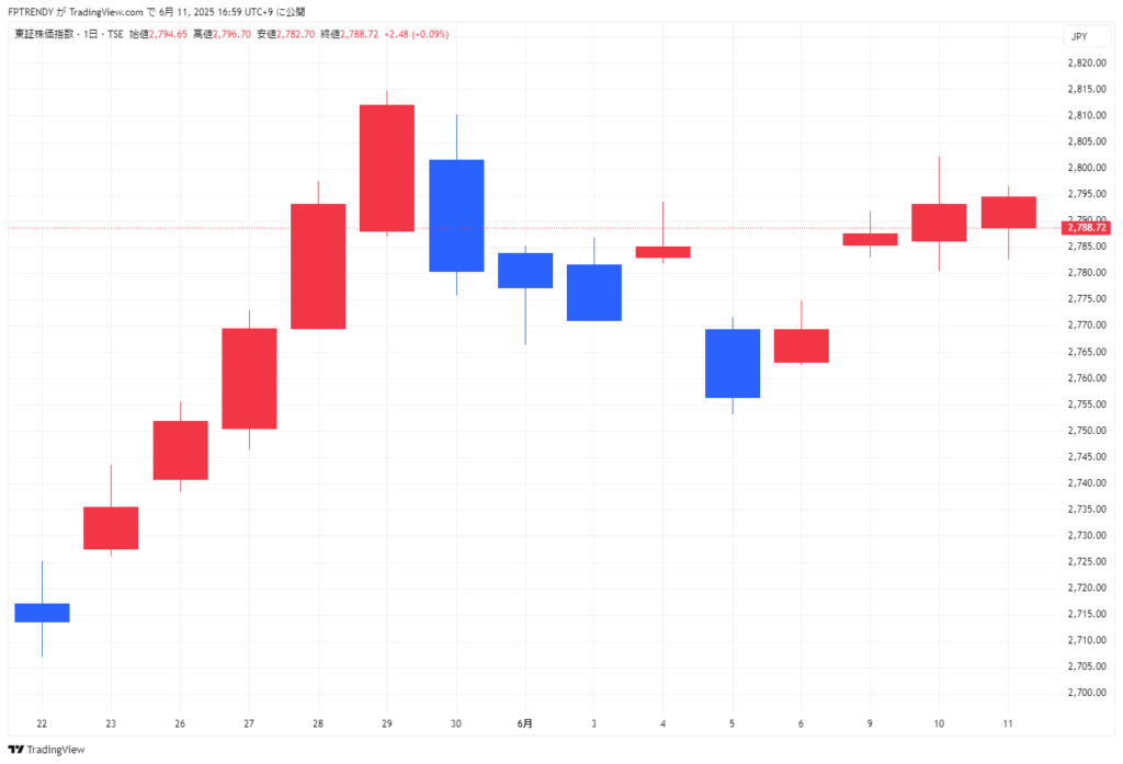 2025年6月11日 東京市場動向(日経平均、TOPIX、ドル円、長期金利、主要株)
