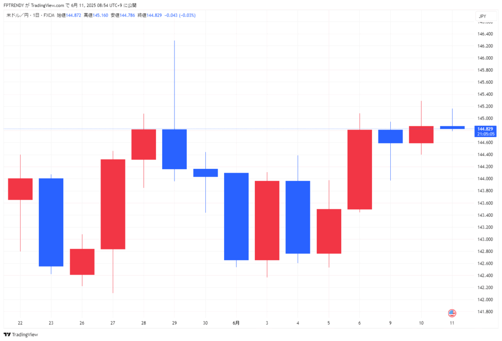 為替市場では、米中協議の進展期待や日銀の金融引き締め慎重観測を背景に円相場は反落し、1ドル=144円台後半で取引を終えました。ただ、5月の米消費者物価指数発表を控えていることから、一方的な動きは抑えられています。