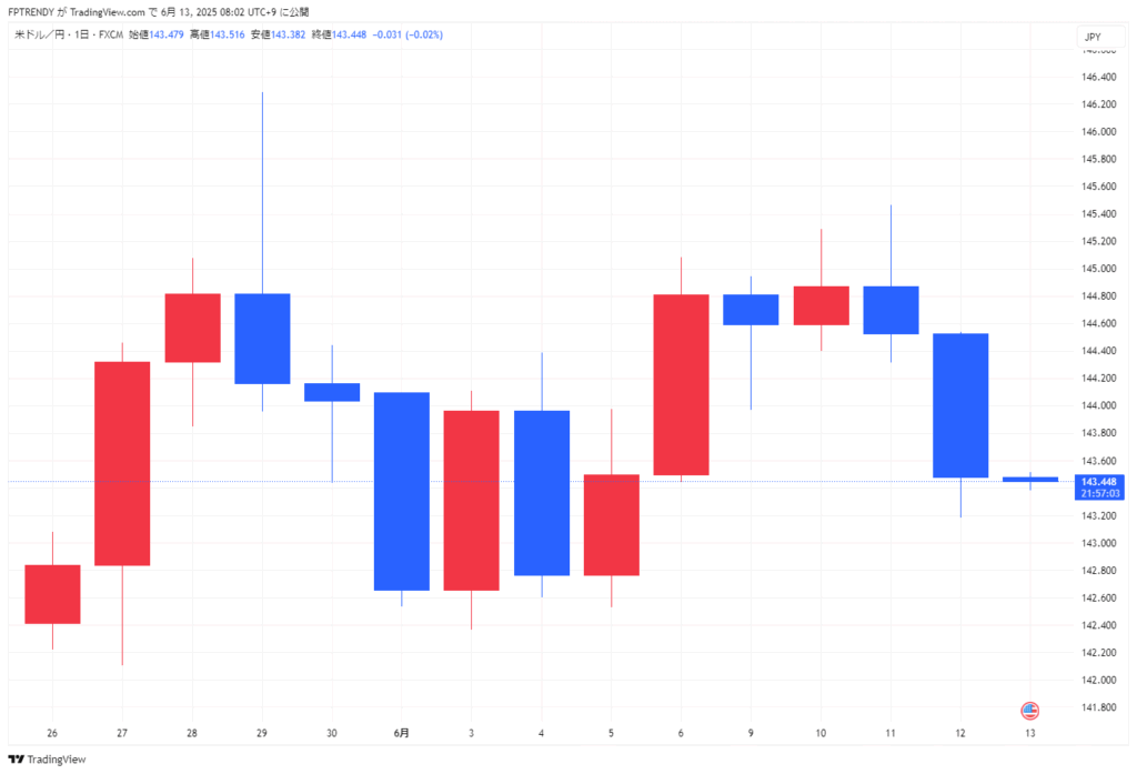 米CPIとPPIの相次ぐ予想下振れにより米利下げ観測が強まり、ドル全面安となりました。21時30分過ぎには一時143.19円まで下落し日通し安値を記録しました。ただし、米株相場の持ち直しにより143.90円付近まで下げ幅を縮める場面もありました。