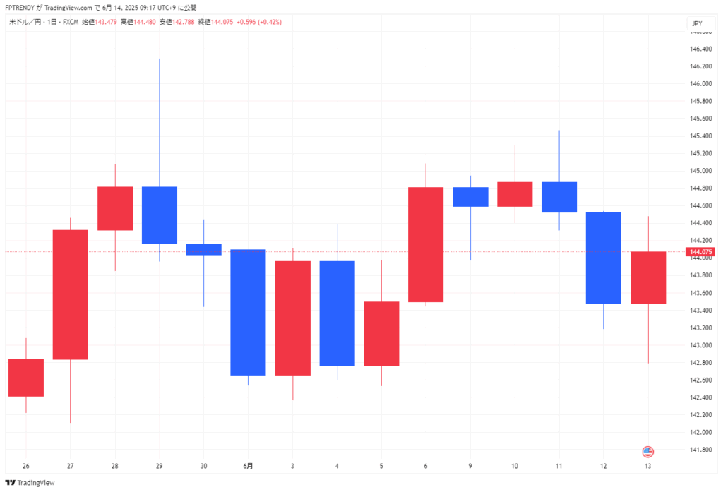 円相場は反落し、1ドル=144円05〜15銭で取引を終了。中東緊迫による「安全資産」としての円買いが一時見られたものの、週末を前に積み上がっていたドル売りポジションの巻き戻しや流動性を重視したドル買いが進み、円安で引けました。