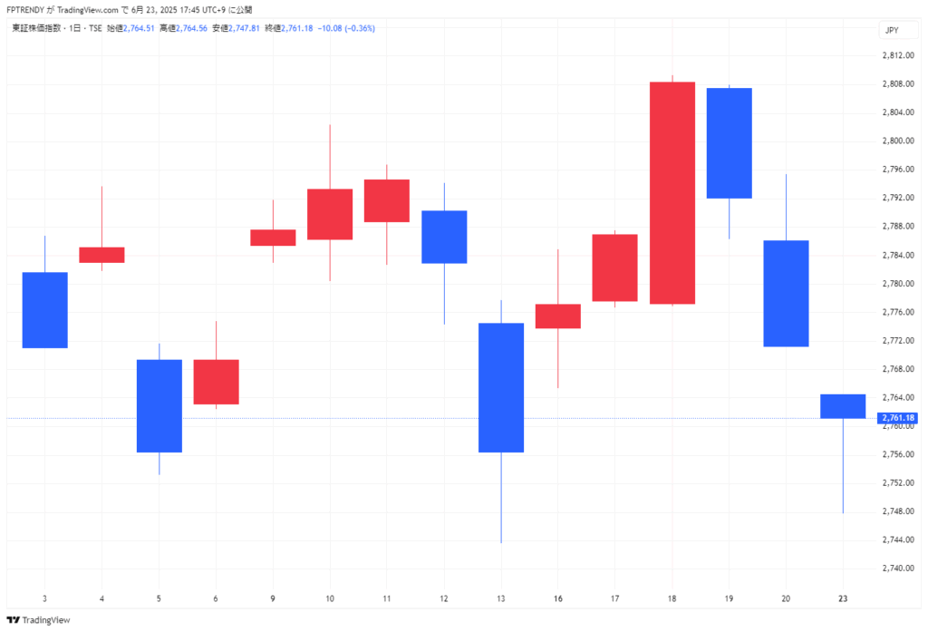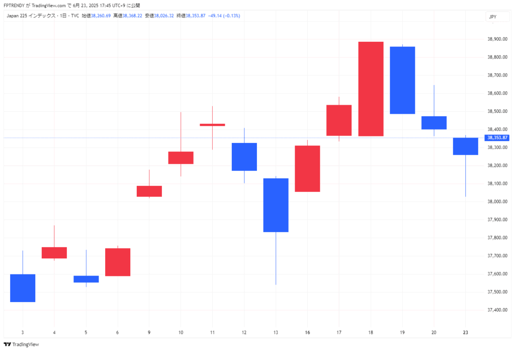 2025年06月23日東京市場動向(日経平均、TOPIX、ドル円、長期金利、主要株)