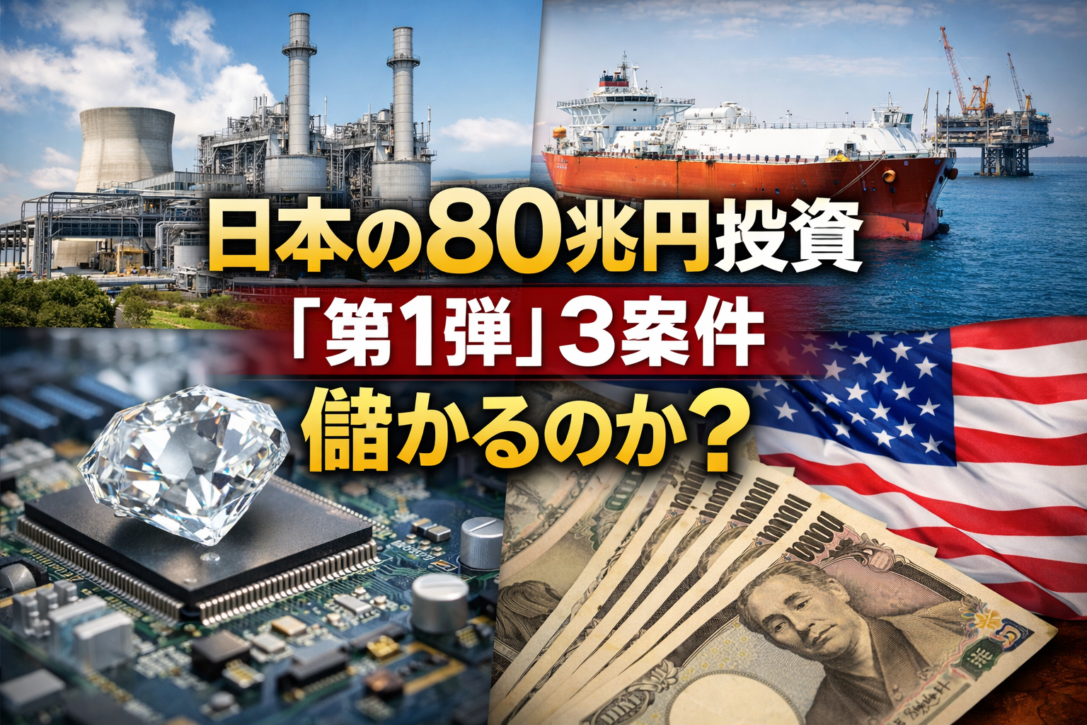 日本から米国への対米投資枠(5,500億ドル=約80兆円規模)の第1弾として、3つのプロジェクトが選ばれた。しかし、80兆円という数字は独り歩きしやすい。重要なのは「大きい・小さい」ではなく、契約条件と事業採算の設計が日本側の利益——回収・受注・調達安定——につながるかどうかだ。今回の3案件は、その最初の試金石になる。