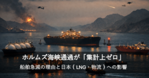 海上輸送の“詰まり”――ホルムズ海峡周辺でタンカーの滞留や運航回避、保険引き受けの厳格化が広がると、価格より先に供給不安が市場心理を支配しやすい。