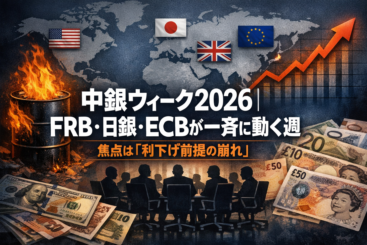 今週の「中銀ウィーク」は、単なる日程の集中ではなく、イラン情勢が引き起こしたエネルギーショックの中で、世界の主要中央銀行が一斉に難しい判断を下す歴史的な週だ。