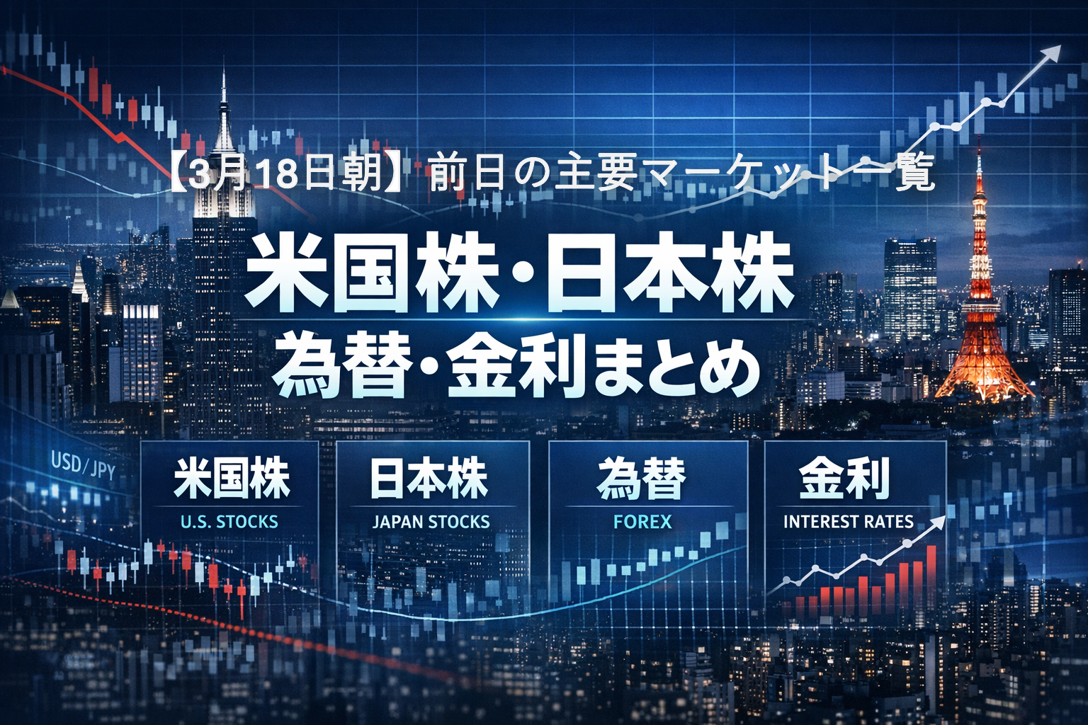 【3月18日朝】前日の主要マーケット一覧|米国株・日本株・為替・金利まとめ