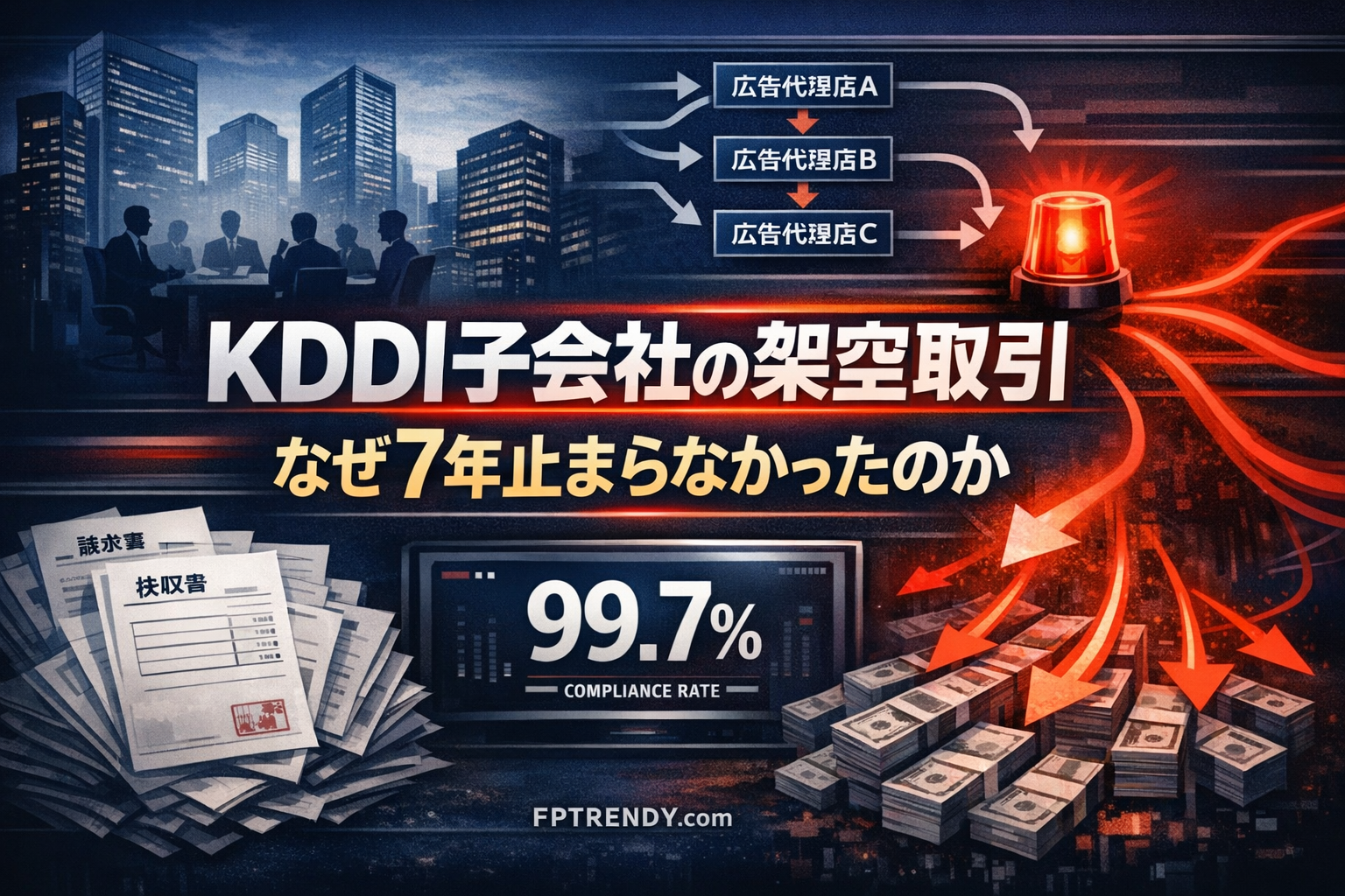 二つ目は、広告代理ビジネスへの知見不足である。通信を主軸とするグループにとって、広告・ポイント・仲介が重なる事業は非中核分野だった。広告主の実在確認、掲載実績の裏付け、検収資料の確認といった基本動作が、グループ全体の統制として十分に機能していなかった。