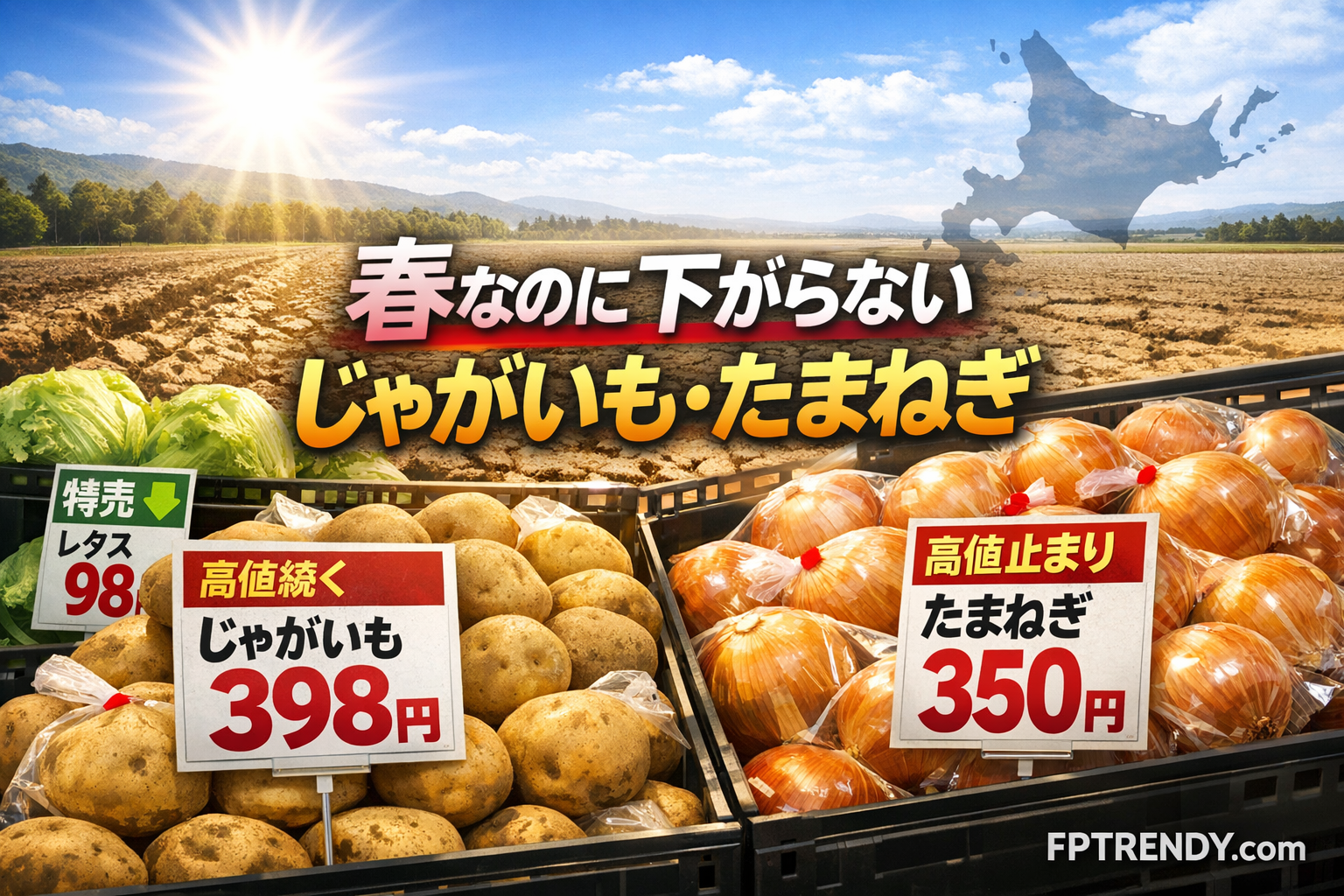 まず北海道産だ。農水省は、ばれいしょとたまねぎについて、2025年夏の高温と干ばつの影響で出荷数量が減少していると説明している。気象庁も2025年夏について、日本の平均気温が統計開始以降で最も高く、北日本太平洋側や東日本太平洋側では降水量がかなり少なかったとまとめている。前年夏の気象条件が、春先まで残る貯蔵系野菜の供給に影を落としている形だ。