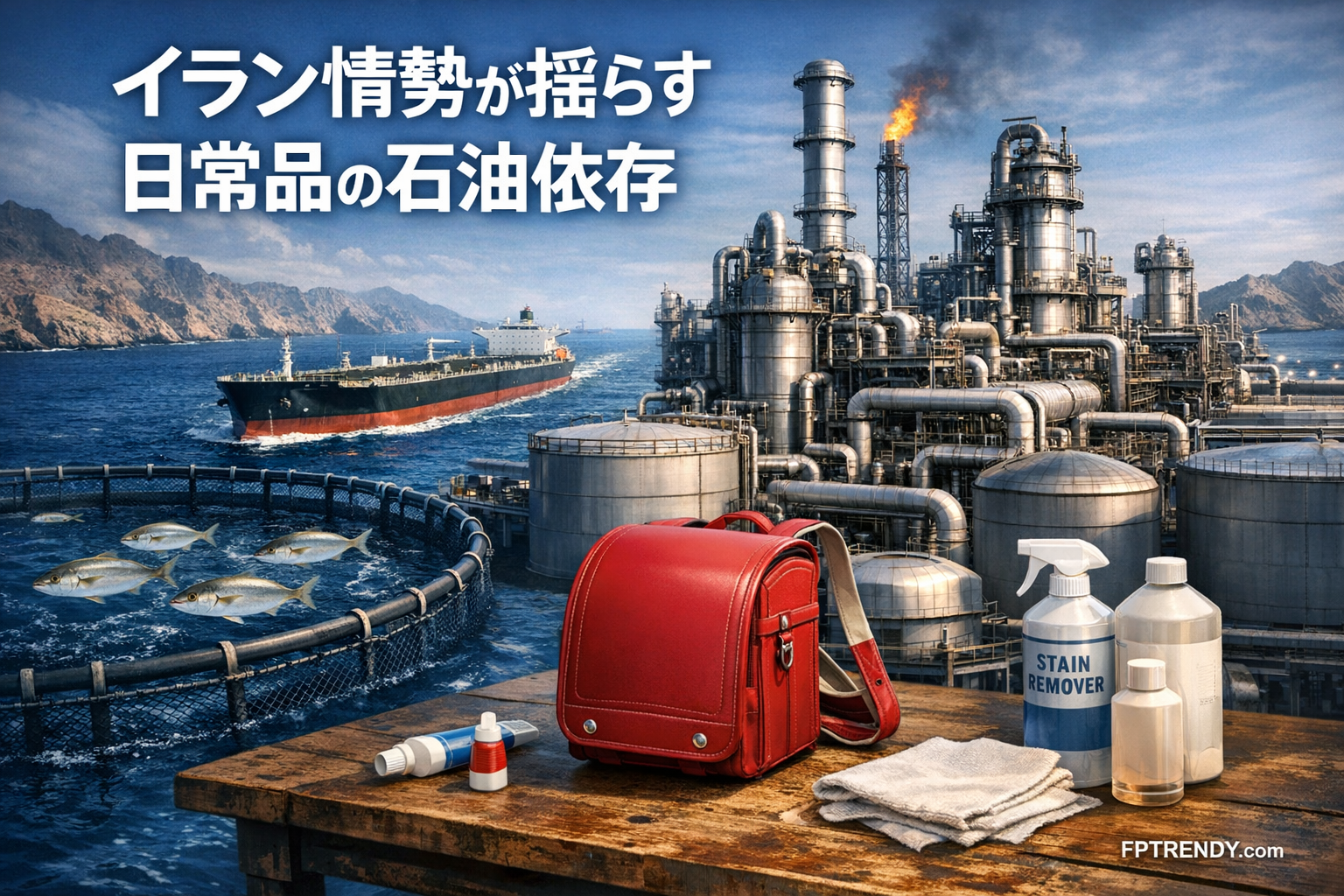 中東で起きている緊張の高まりが、なぜ鹿児島の養殖魚やランドセル、クリーニング店の資材にまで響くのか。一見ばらばらに見えるこれらの品目は、いずれも石油を起点とするサプライチェーンにつながっている。イラン情勢の緊迫化は、日本の身近な商品がどれほどエネルギーと石油化学品に依存しているかを改めて浮かび上がらせている。