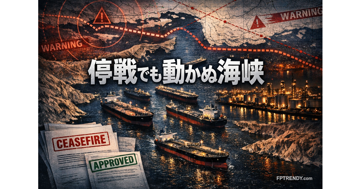 政治が「停戦」と呼んでも、物流は「安全に運べる」と判断するまで動かない。ホルムズ海峡でいま起きているのは、その当たり前だが見落とされやすい現実だ。問われているのは、海峡が開いたかどうかではない。誰が、どの条件で、安心して通れるのか。その答えが見えるまで、停戦後のホルムズ海峡はなお正常化したとは言えない。