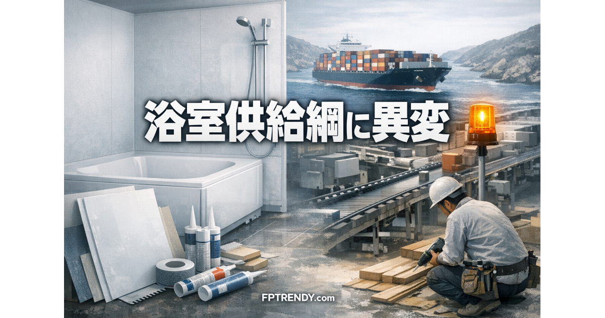 見出しだけを見ると「風呂が買えなくなる」「トイレまで止まる」と受け止められかねないが、実態はそこまで単純ではない。今回の焦点は、ホルムズ海峡周辺の緊張や物流制約が、ナフサや有機溶剤を通じて日本の住宅設備の供給網に波及したことにある。