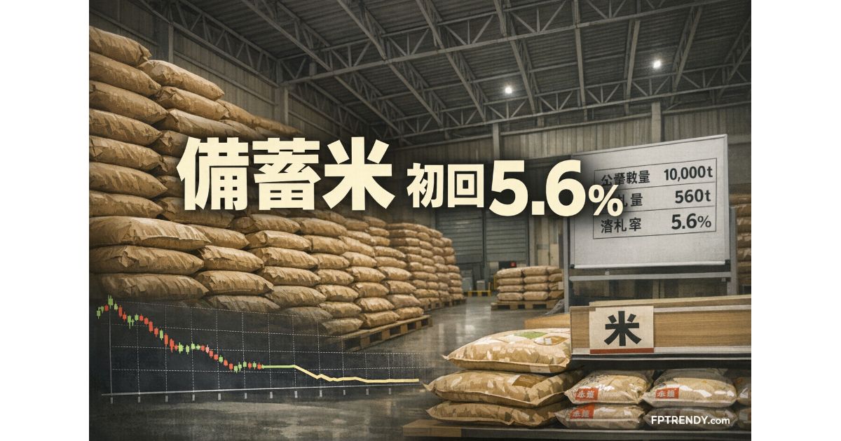 農林水産省が2026年4月15日に公表した令和8年産政府備蓄米の第1回入札結果は、買入予定数量207,521トンに対し、落札数量11,710トンだった。落札率は5.6%で、備蓄水準の回復を目指す初回入札としては低い出足となった。ただ、この数字だけで直ちにコメ不足とみるのは早い。今回の結果が映しているのは、需給そのものより、政府の買入条件と売り手の相場観がなおかみ合っていない現状だ。