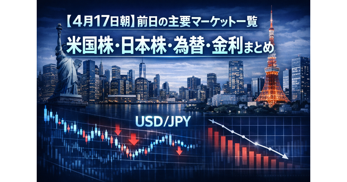 【4月17日朝】前日の主要マーケット一覧|米国株・日本株・為替・金利まとめ