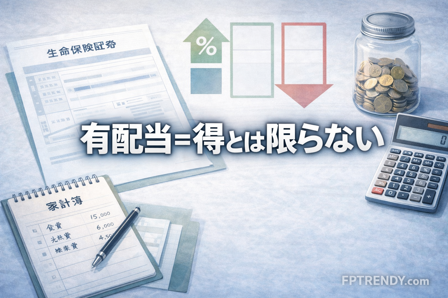 有配当保険が有利かどうかは、配当金の有無だけでは決まらない。比較するときは、保険料、保障内容、加入期間、家計負担をあわせて見る必要がある。