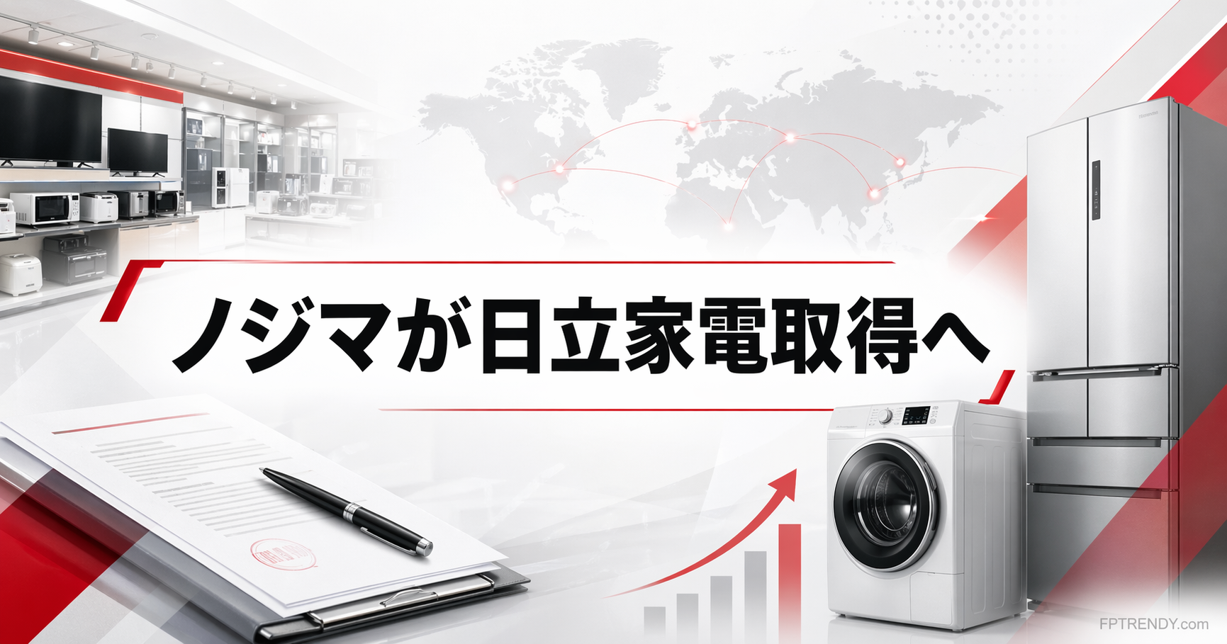 家電量販店大手のノジマ(東証プライム: 7419)が、日立製作所(東証プライム: 6501)グループの家電事業を承継する新会社の株式80.1%を約1100億円で取得する。2026年4月21日に両社が公表した。日立側は19.9%を保有し、日立ブランドの家電事業は新会社のもとで国内外一体の運営に移る見通しだ。