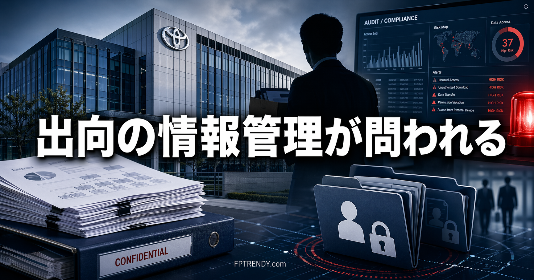 今回の事案で重いのは、持ち出された情報の中身だ。報道ベースでは、トヨタの組織表や会議の議事録に加え、従業員や取引先関係者の個人情報、さらに家族に関する情報も含まれていたとされる。これは単なる営業資料の共有ではなく、企業内部の運営情報と個人情報が外部へ持ち出された可能性を示す。