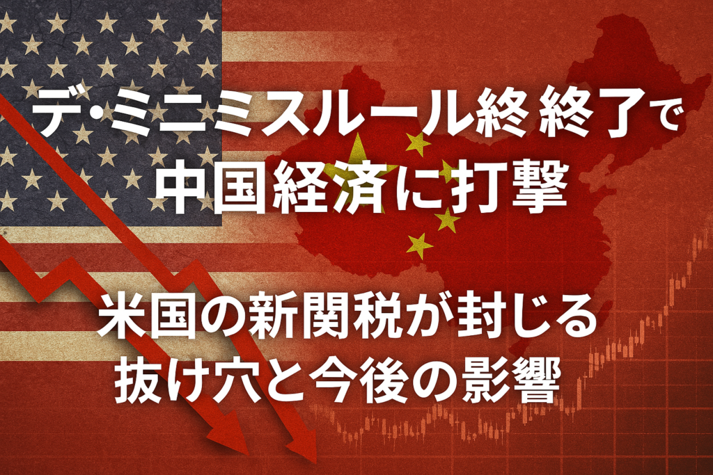 2025年5月2日をもって、米国は中国および香港からの低価格輸入品に適用されていた「デ・ミニミス」ルールを終了します。これにより、中国企業が活用していた関税回避の手段が封じられ、今後、中国経済に大きな影響を与えると予想されます。 デ・ミニミ... -
