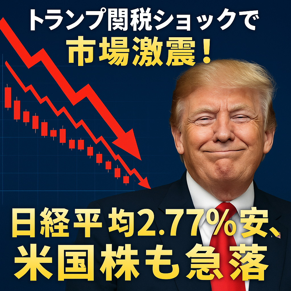 "The market shakes due to the Trump tariff shock, the Nikkei average falls 2.77%, and US stocks plummet."