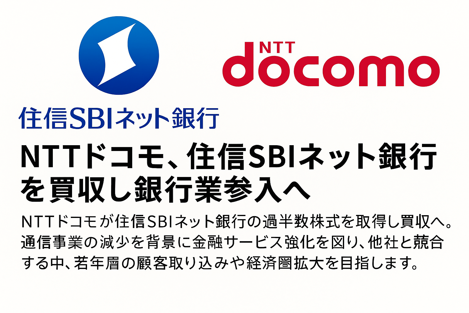 NTTドコモが住信SBIネット銀行の買収を進め、銀行業へ参入。通信業界の金融競争が激化する中、顧客基盤強化と若年層取り込みを目指す戦略的買収です。 -