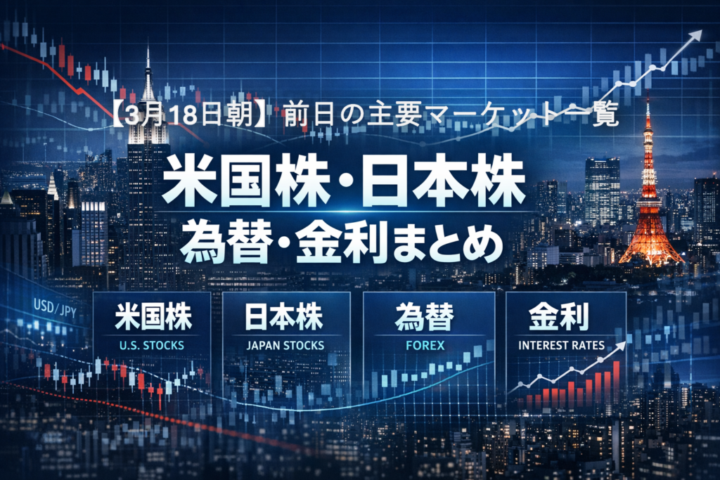 【3月18日朝】前日の主要マーケット一覧|米国株・日本株・為替・金利まとめ