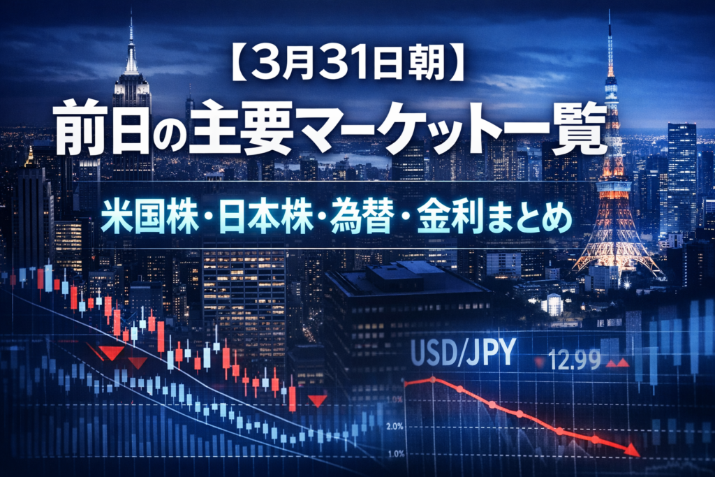 【3月31日朝】前日の主要マーケット一覧|米国株・日本株・為替・金利まとめ