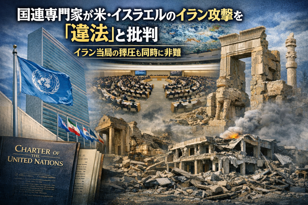 国連人権理事会の特別報告者が、米国・イスラエルの対イラン攻撃を「国連憲章違反」と批判。同時にイラン当局の通信規制も非難した"両面批判"の意味とは。専門家の法的評価の重みと限界をわかりやすく解説。 -