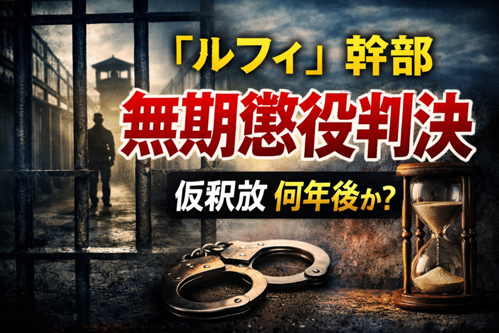 「ルフィ」広域強盗事件で幹部・藤田聖也被告に無期懲役判決。事件と裁判の要点を整理しつつ、無期懲役の仮釈放は“10年で出られる”のか、統計と運用の実態から読み解く。 -