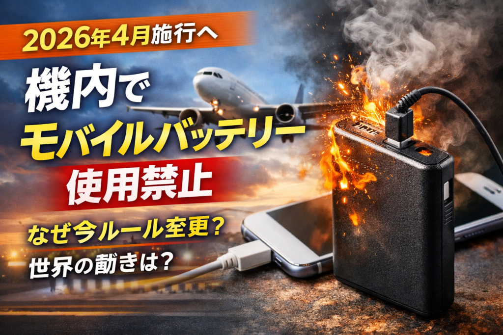 2026年4月にも、日本発着の航空便で機内のモバイルバッテリー使用が禁止される見通しに。端末への給電だけでなく機内電源からの充電も対象となり、持ち込みは1人2個までに制限される方向だ。釜山の旅客機火災を含む国内外の発煙・発火事案を背景に、ルール変更の理由と世界の動きを整理する。 -