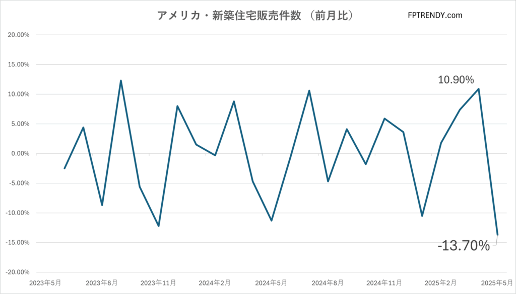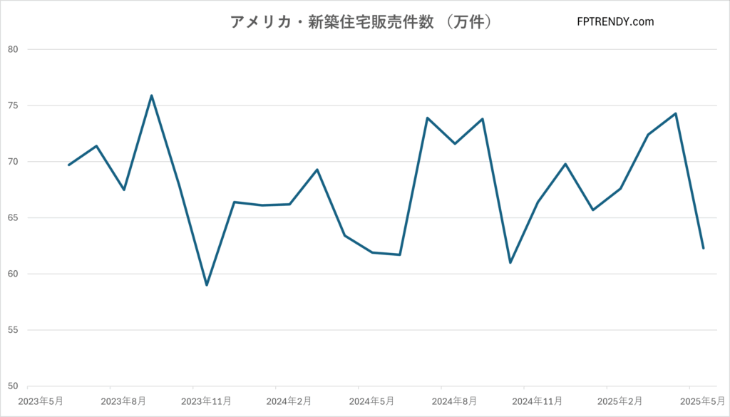 アメリカ・新築住宅販売件数   05月 – 発表日06/25 23:00