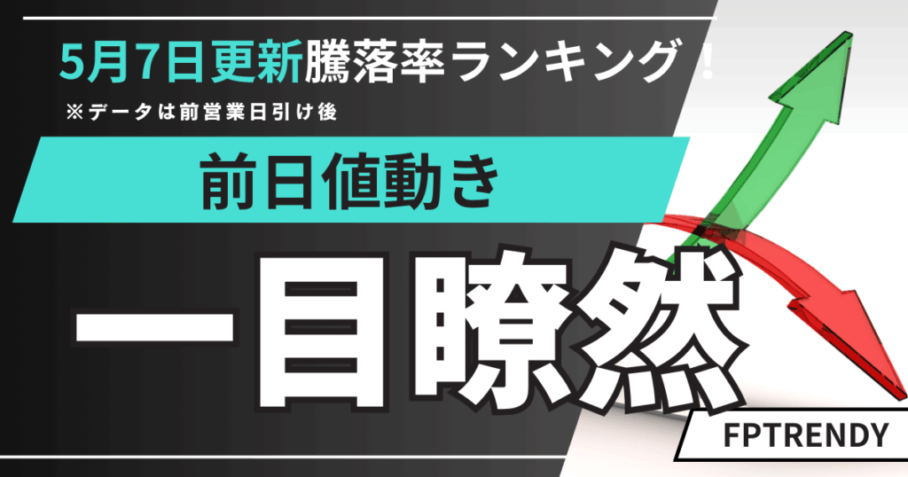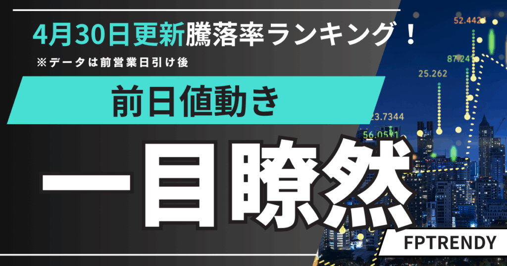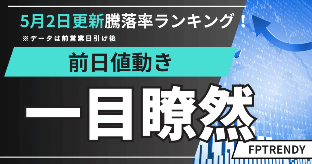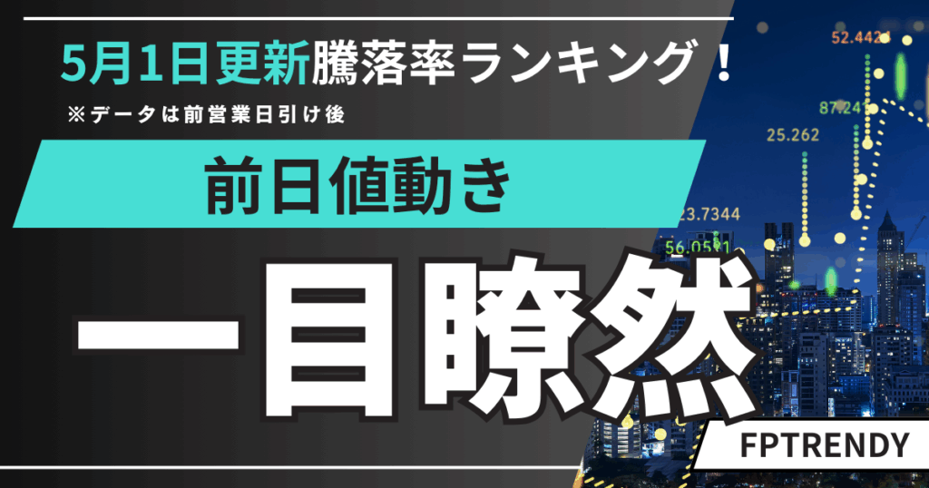 2025年5月1日朝更新|前日の日本株・米国株の騰落率ランキングを速報!日経平均・ダウ・為替・仮想通貨の動向もまとめてチェック。 -
